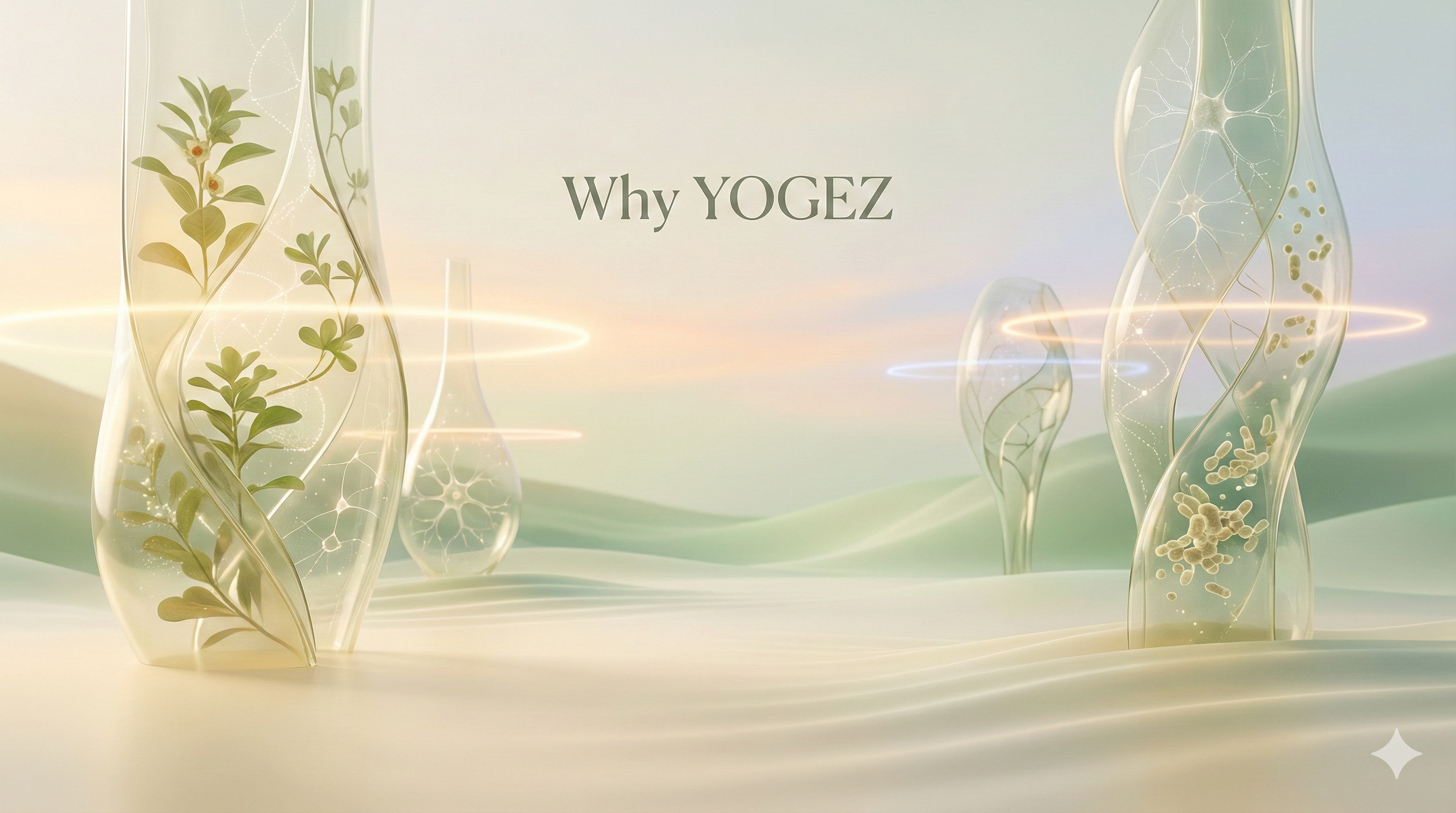 YOGEZ is not a product brand. It’s a Soul-Science™ system with Bio-Aligned Rituals to realign, restore, and radiate; balancing your gut–skin–brain–soma axis so you can come back to your rhythm.