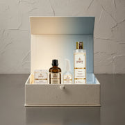 Four products, one Radiance Matrix: Cleanse → Enzyme Glow → Dew Cocoon → Gut–Glow Elixir.